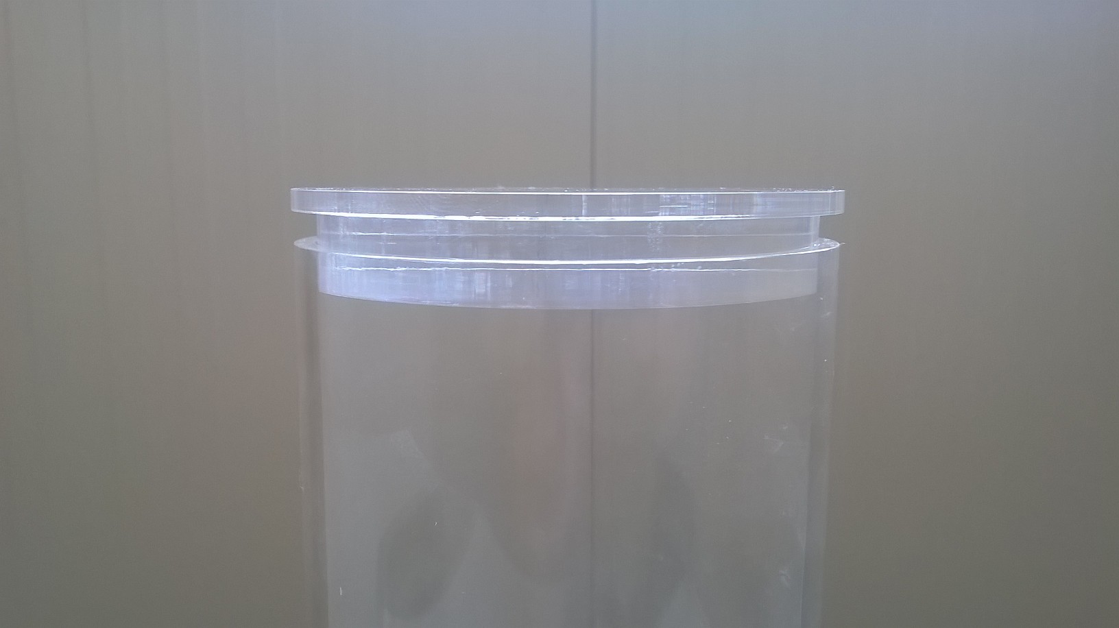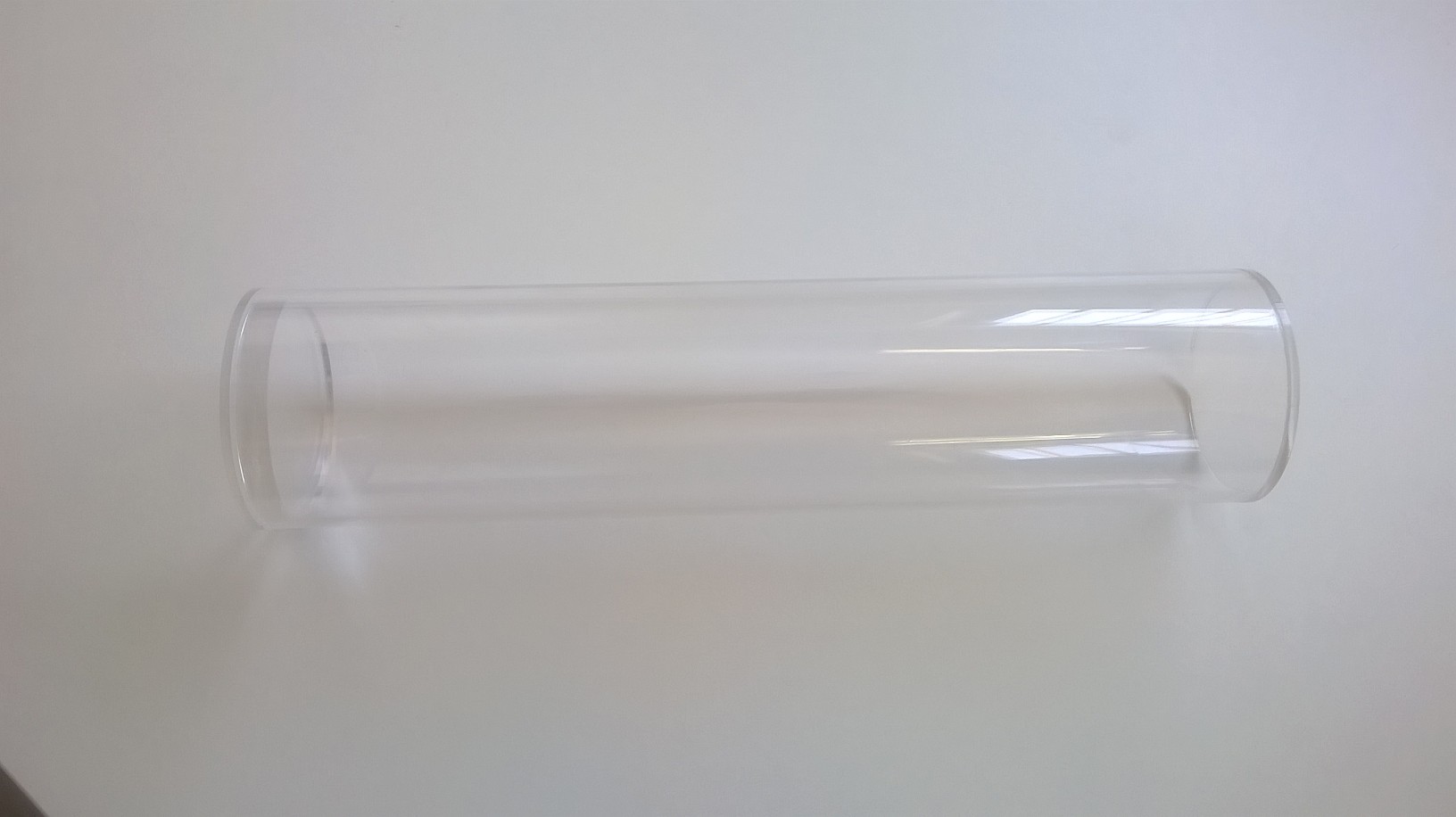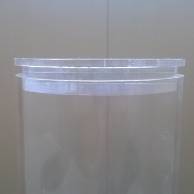 Tubo em acrílico cristal com 3 mm de espessura e 80 mm de diâmetro com tampa de encaixe.