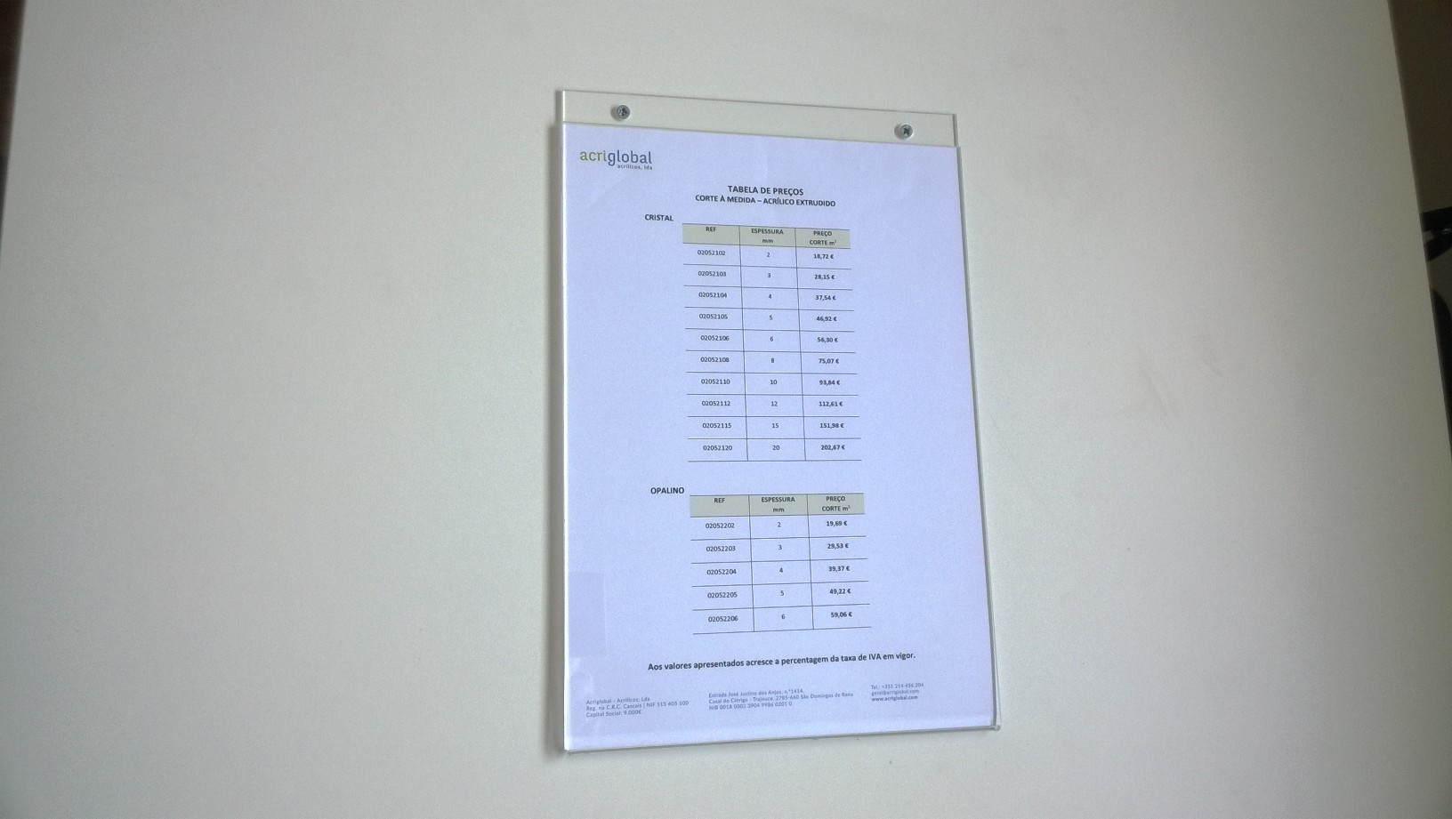 Aos valores apresentados acresce IVA à taxa legal em vigor.