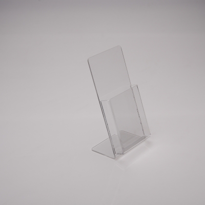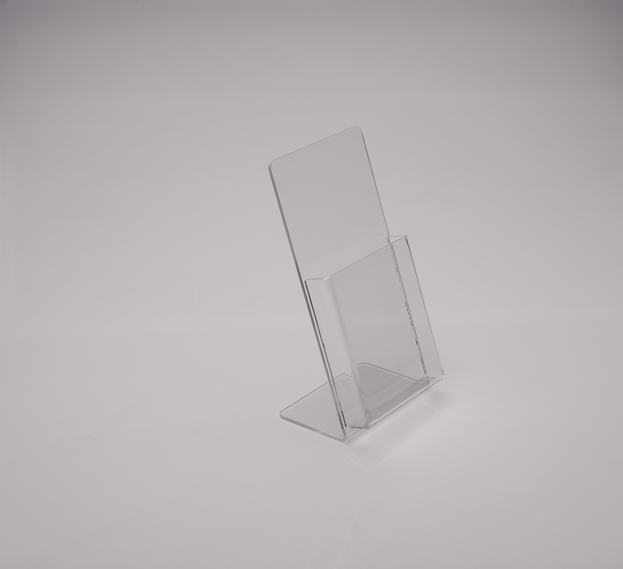 Porta folhetos em acrílico cristal com 3 mm de espessura.