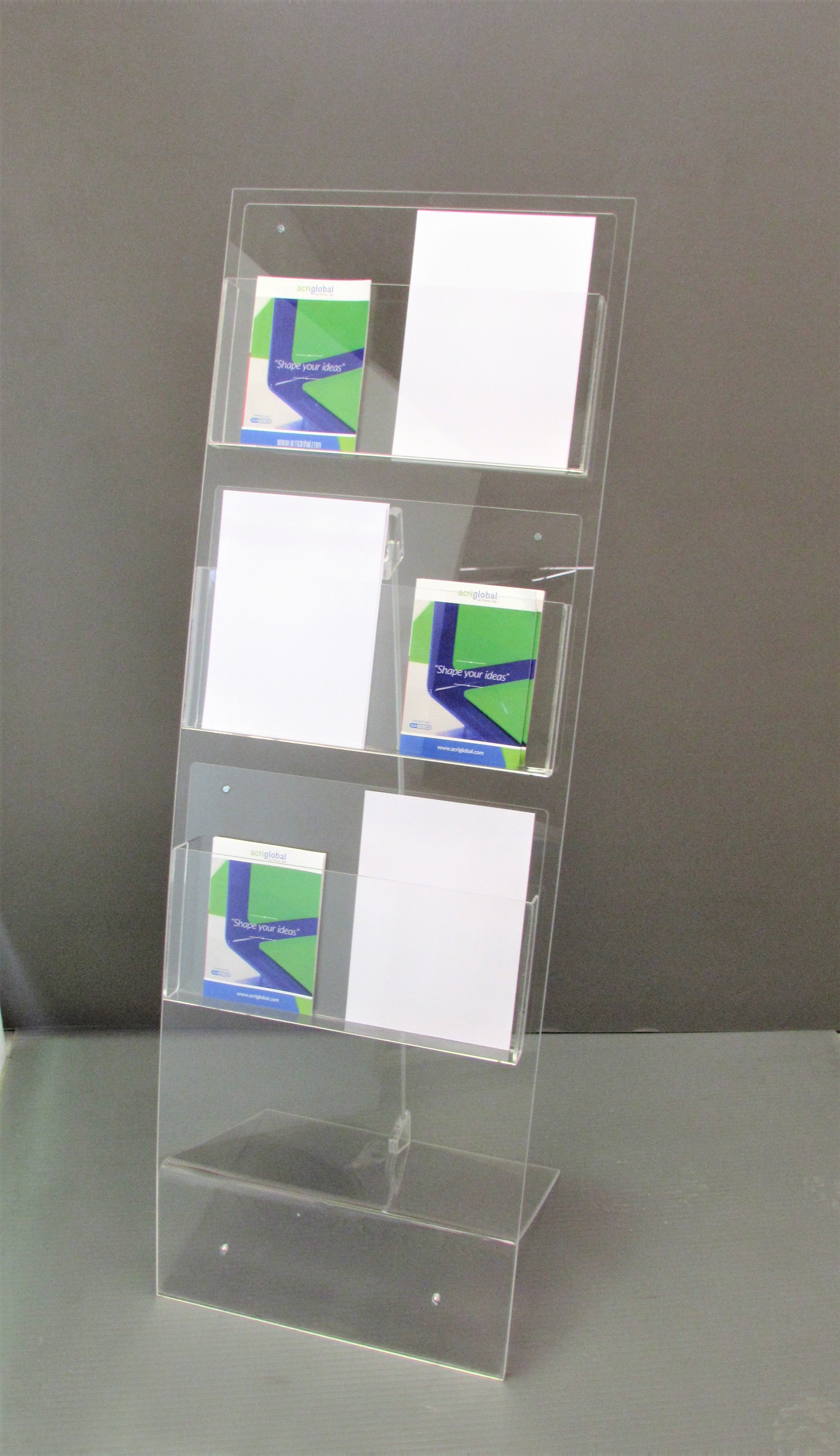 Porta folhetos em acrílico cristal 3, 5 e 8 mm.