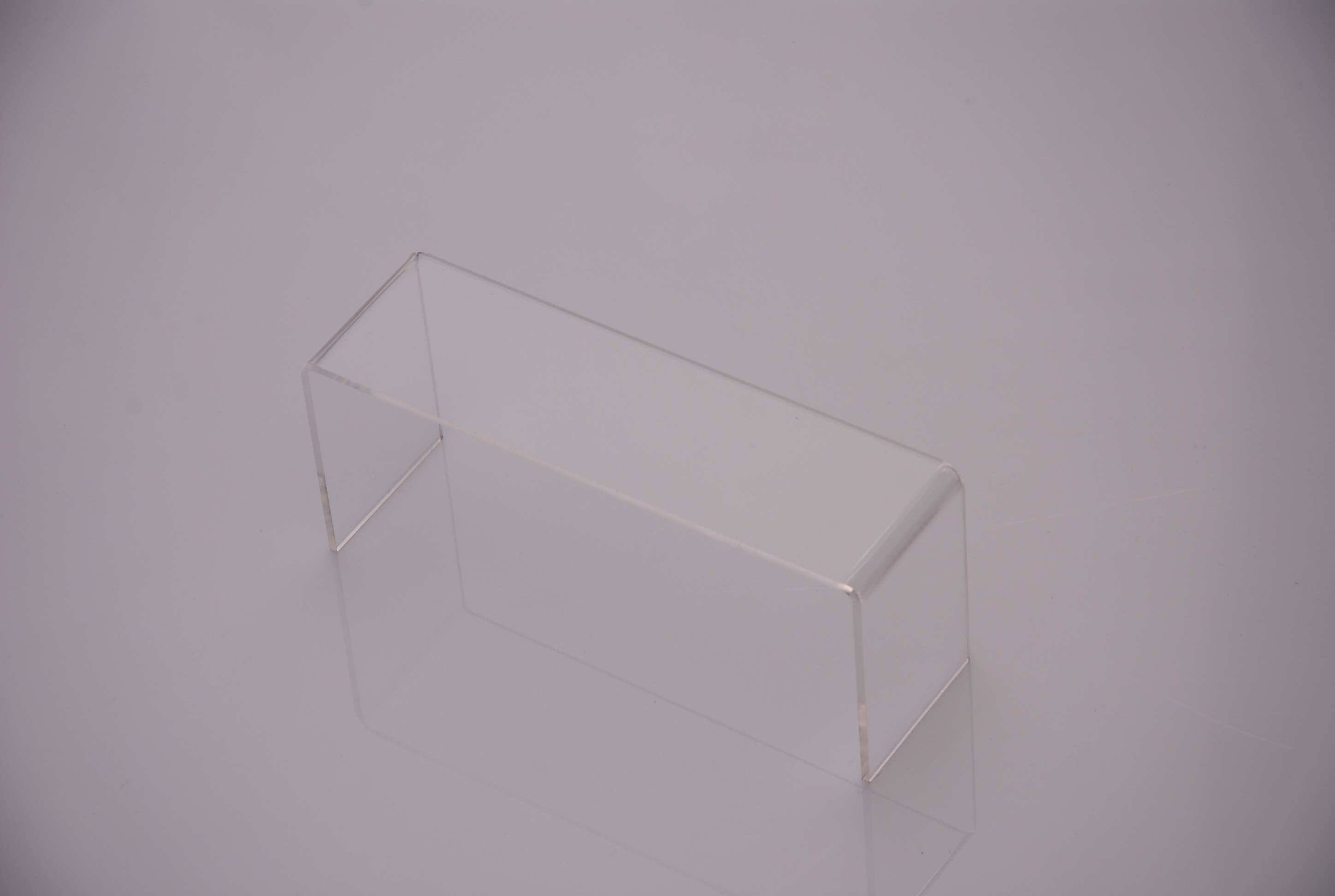 Expositor retangular em acrílico cristal com 4 mm de espessura. Produzimos também em acrílico de cor e em outras medidas.