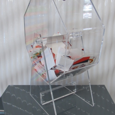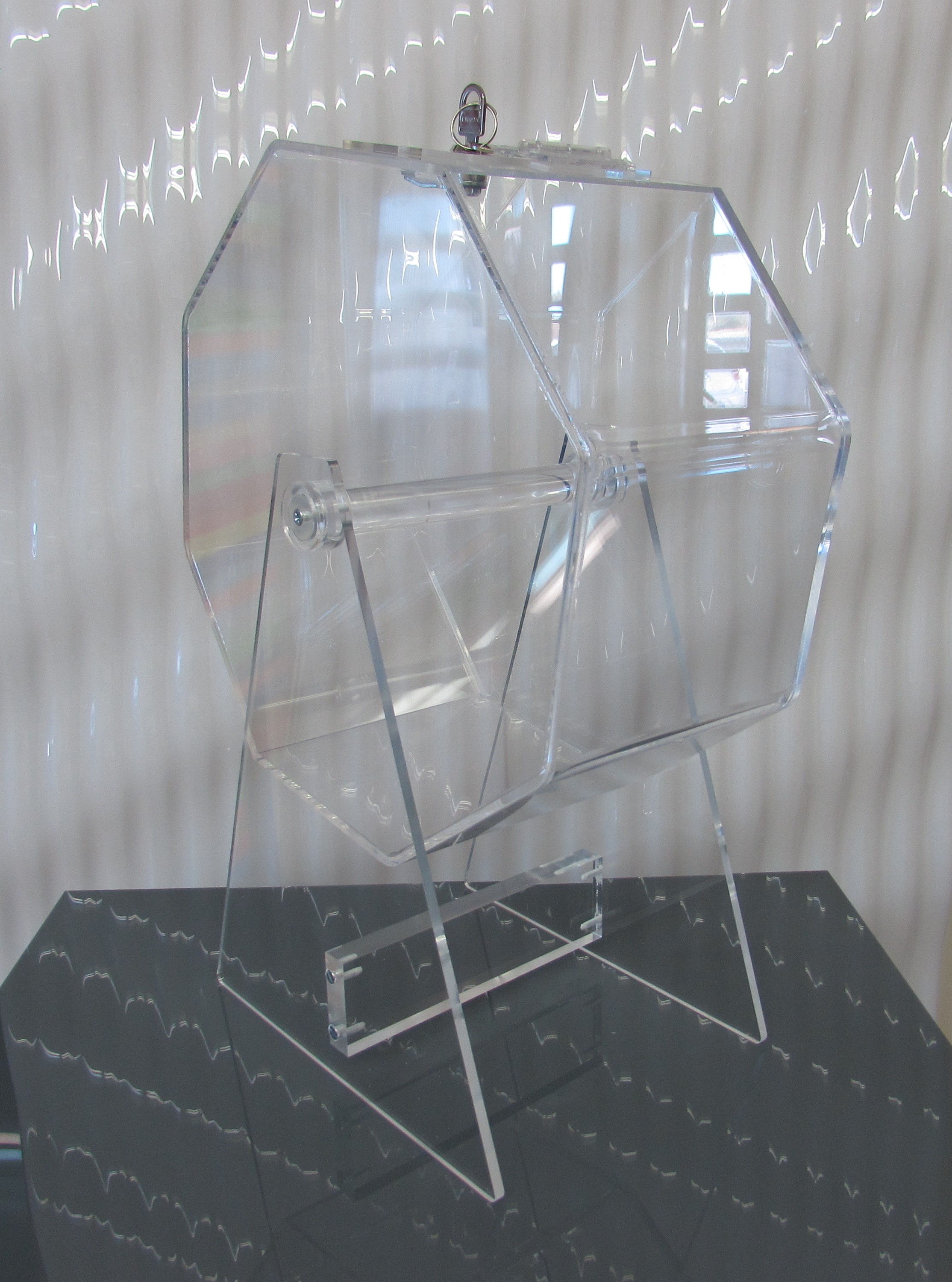 Tômbola octogonal em acrílico cristal com fechadura