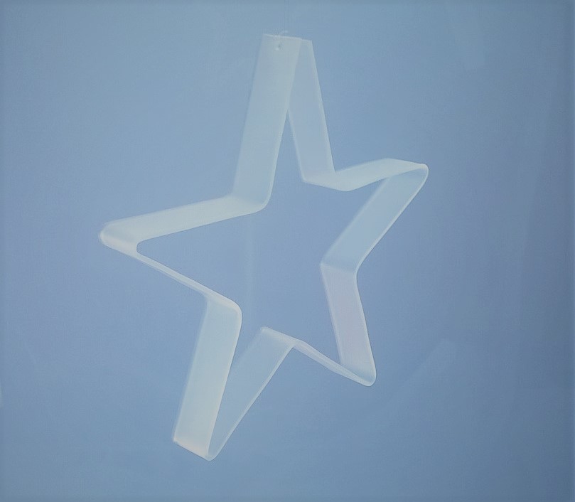 Estrela em acrílico de 3 mm de espessura e 230 mm de altura em várias cores (para pendurar).