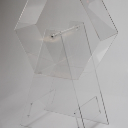 Coluna iluminada em acrílico branco opalino c/ câmpanula