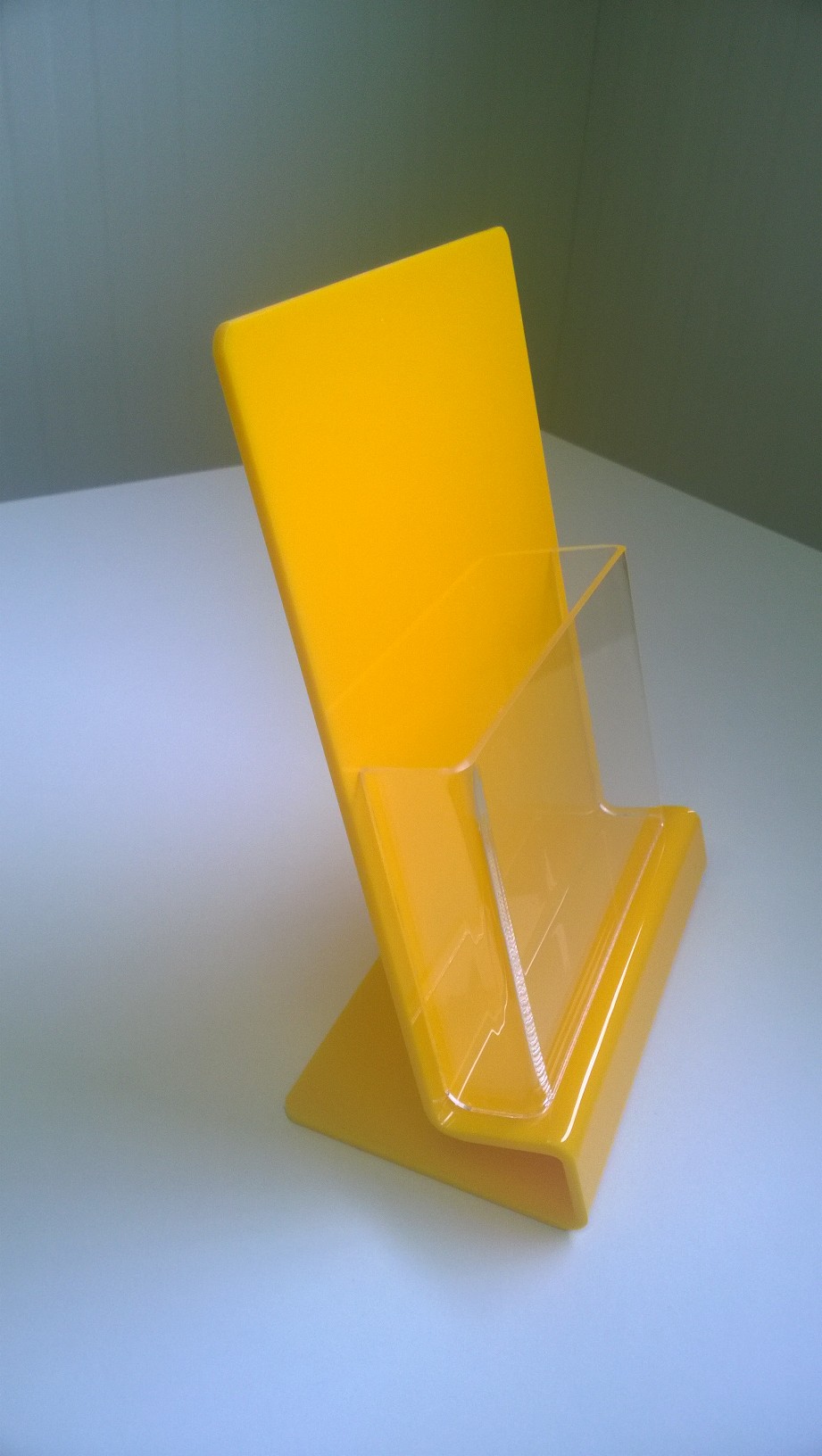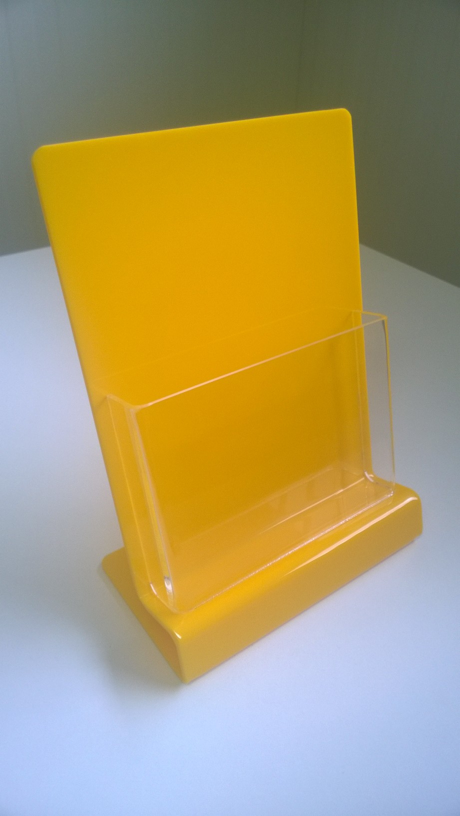 Porta Folhetos em acrílico cristal e cor com 3 mm de espessura. Poderá optar por qualquer cor. Consulte catálogo de cores em "Corte à medida".